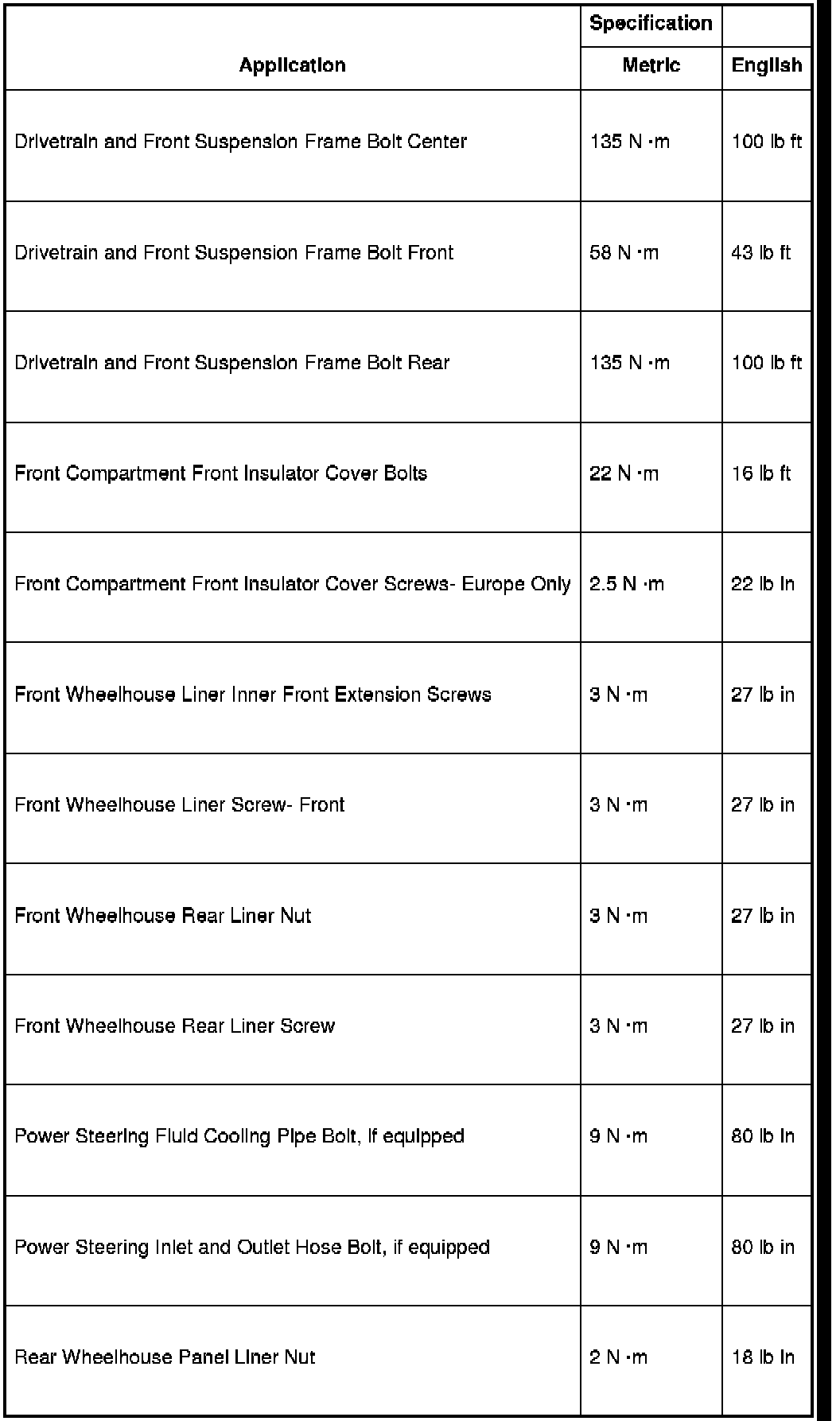 Fastener Tightening Specifications