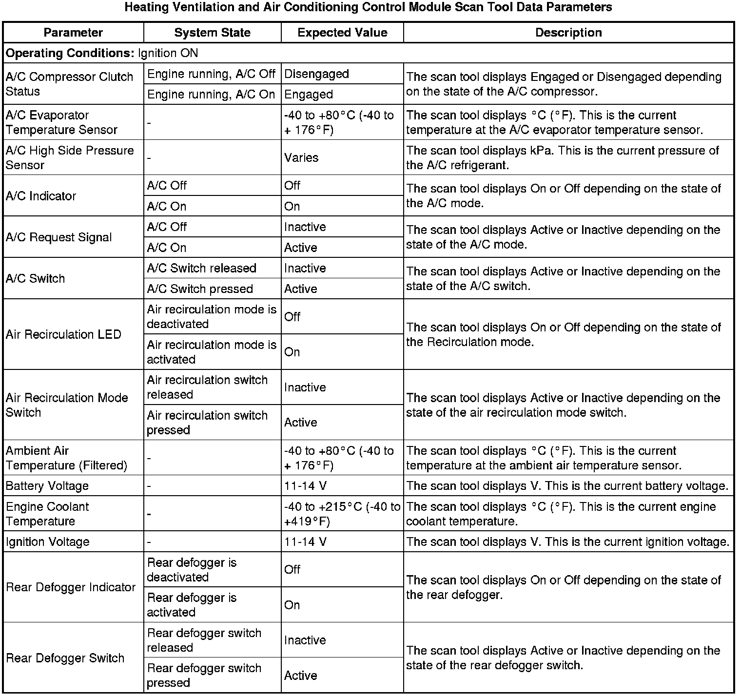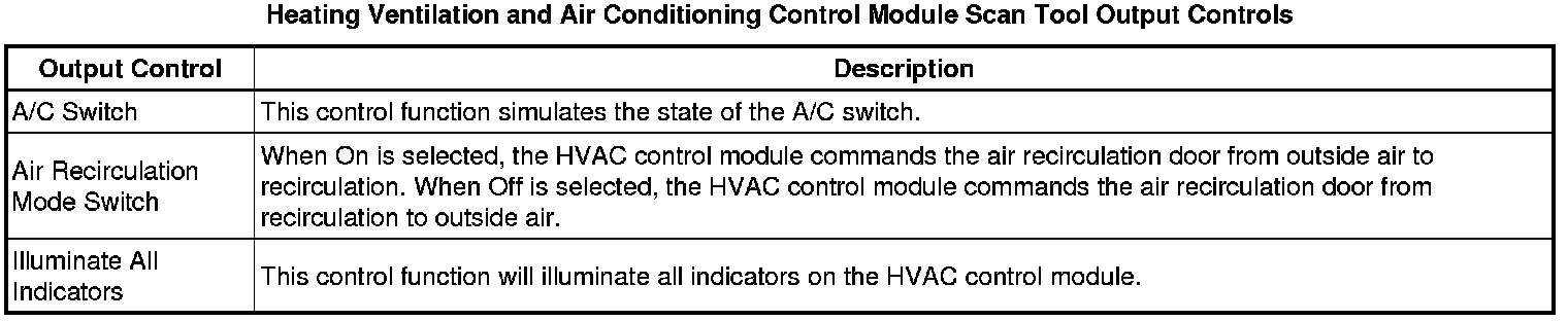 Heating, Ventilation and Air Conditioning Control Module Scan Tool Information