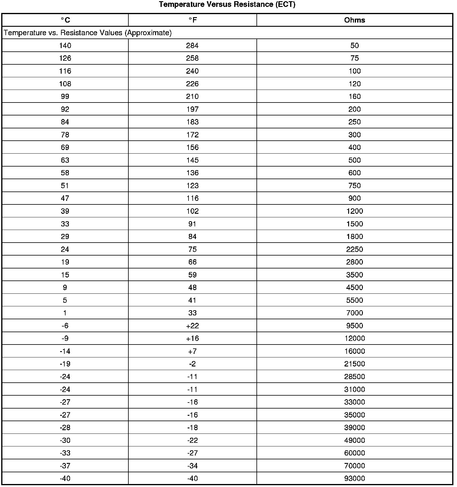 Temperature Versus Resistance (ECT)