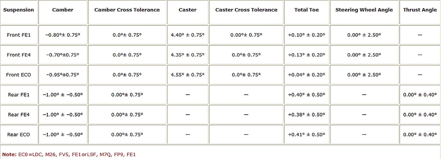 Wheel Alignment Specifications