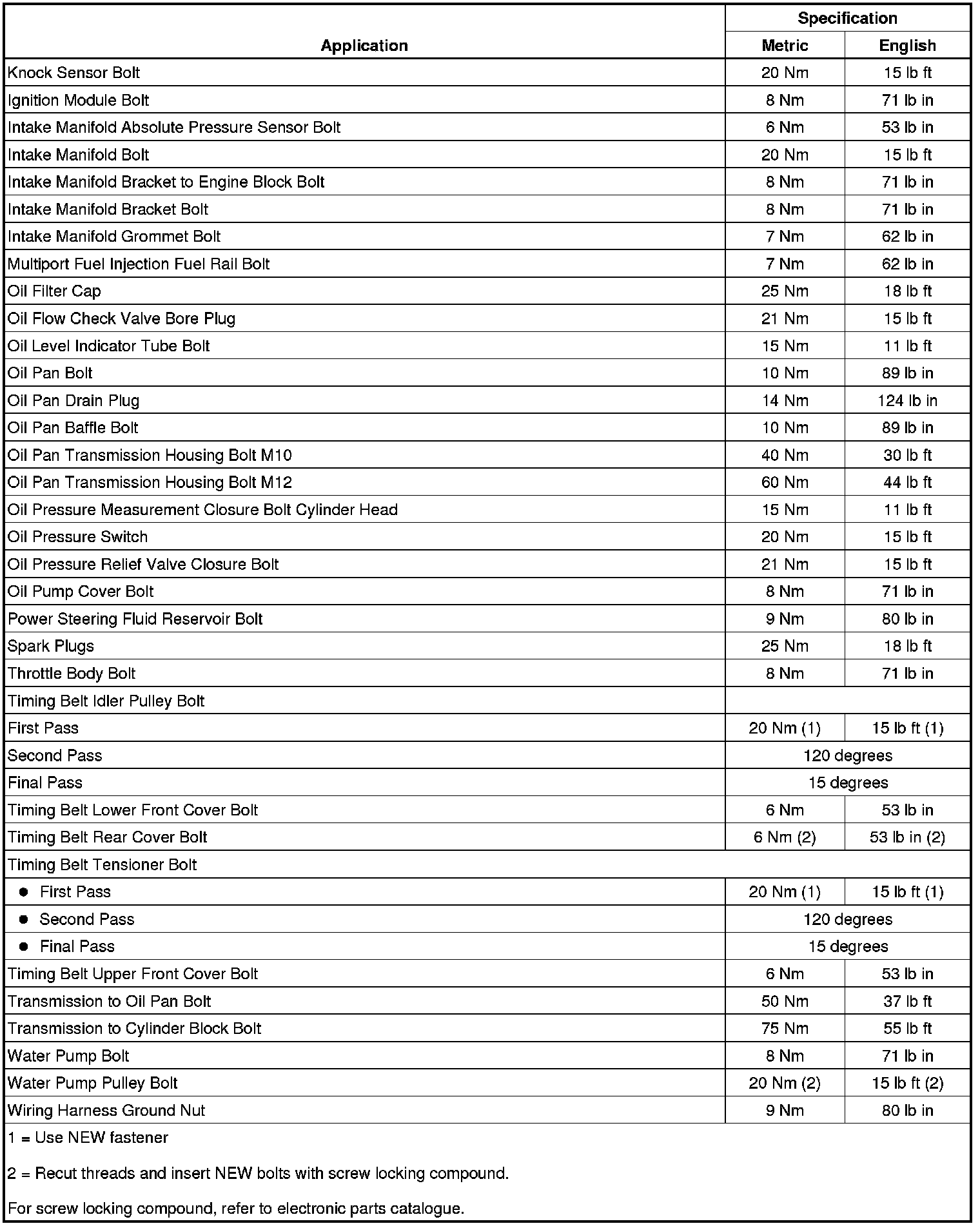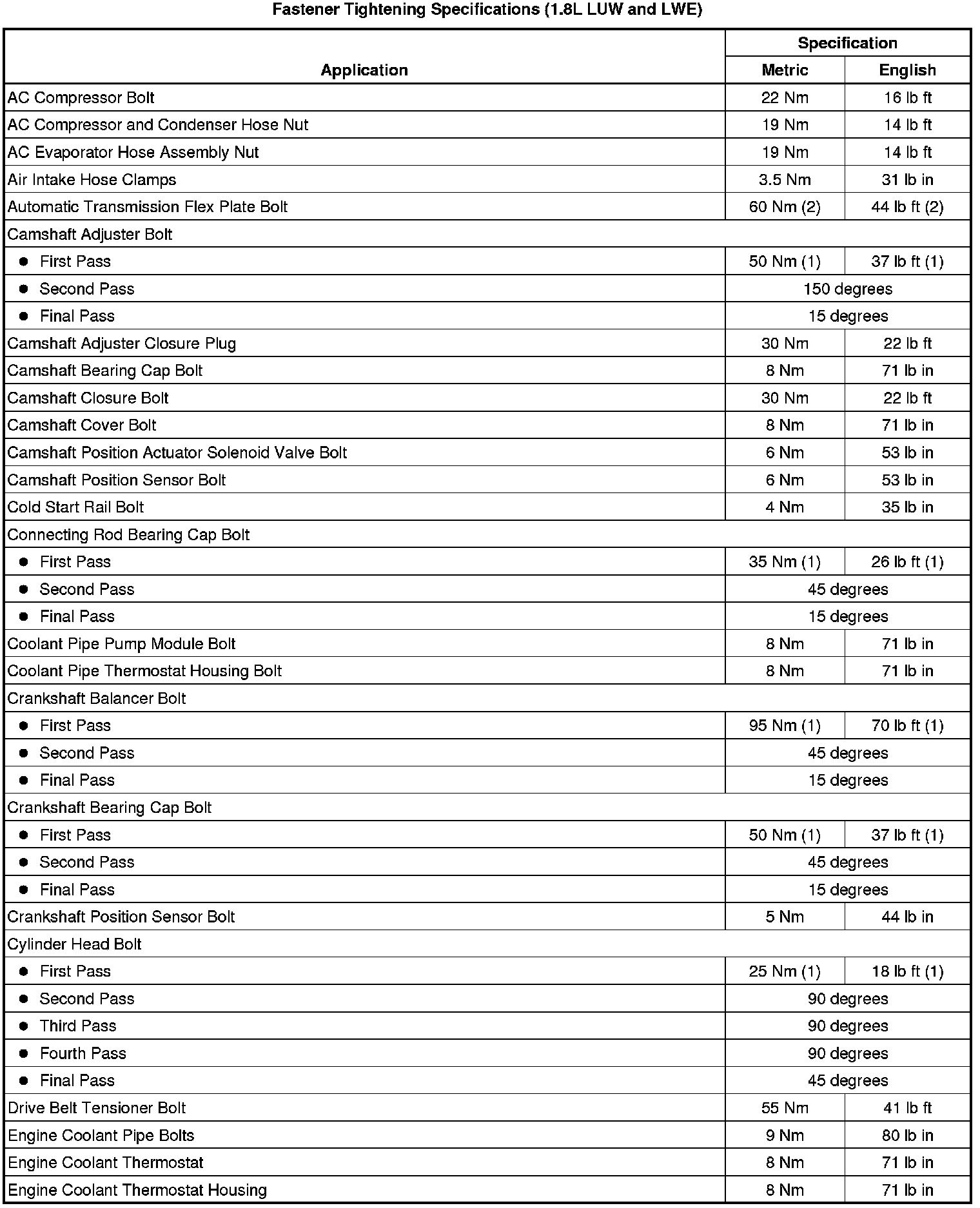 Fastener Tightening Specifications (1.8L LUW and LWE)