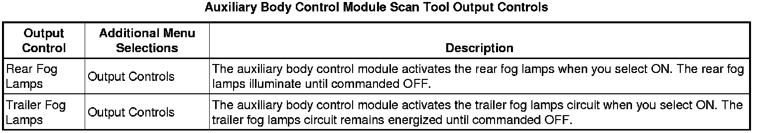 Auxiliary Body Control Module Scan Tool Information