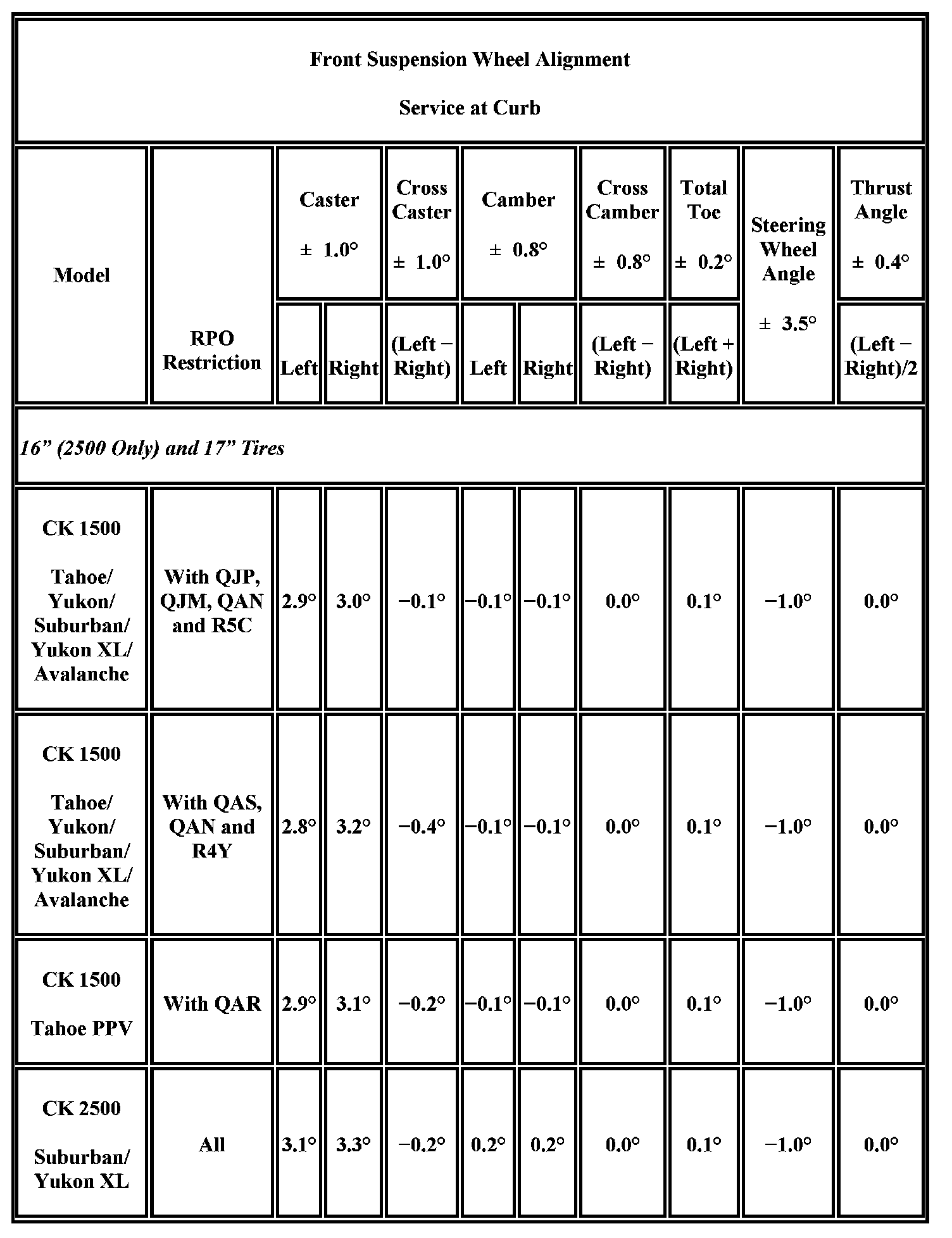 Wheel Alignment Specifications