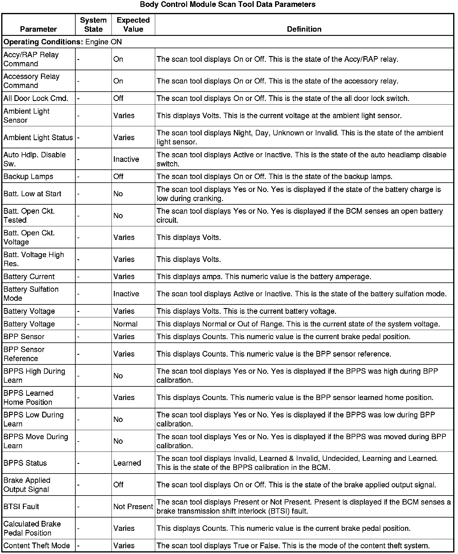 Body Control Systems: Testing and Inspection