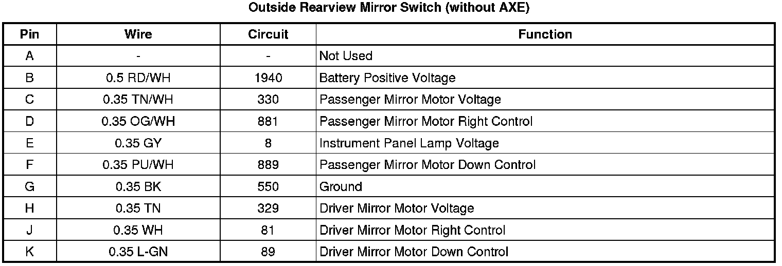 Outside Rearview Mirror Switch (without AXE)