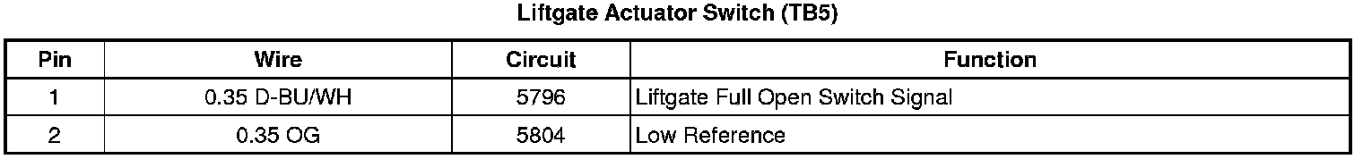 Liftgate Actuator Switch (TB5)