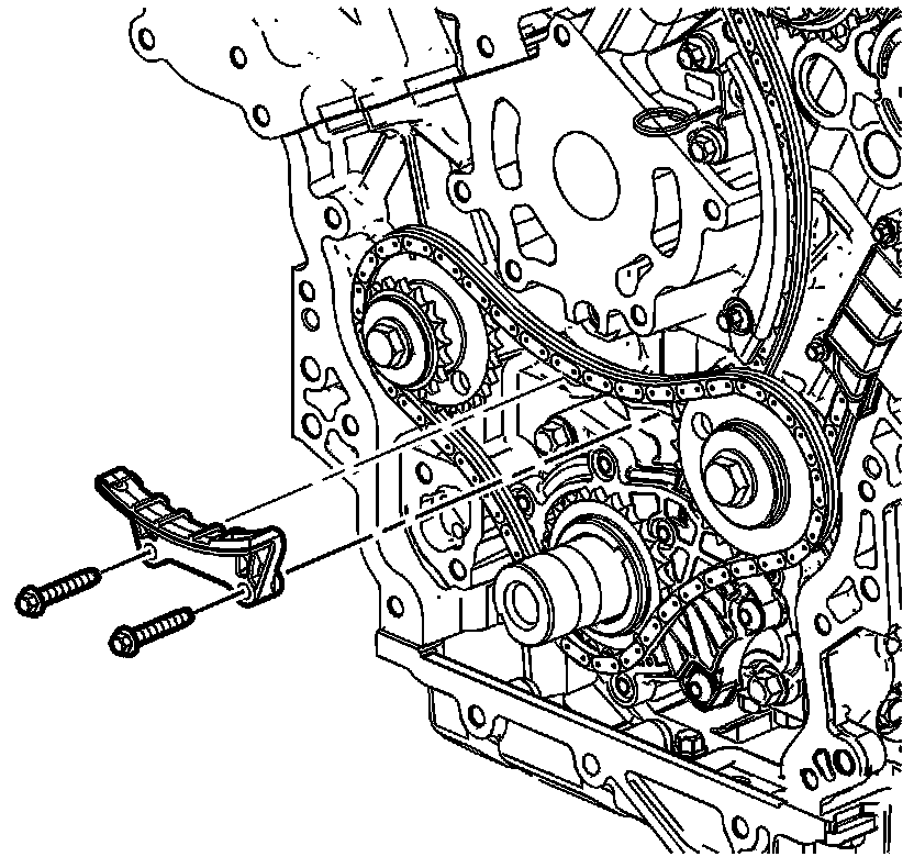 1. Install the primary upper camshaft drive chain guide. Refer to Primary Timing Chain Guide Installation - Upper Primary Timing Chain Guide Installation - Upper.