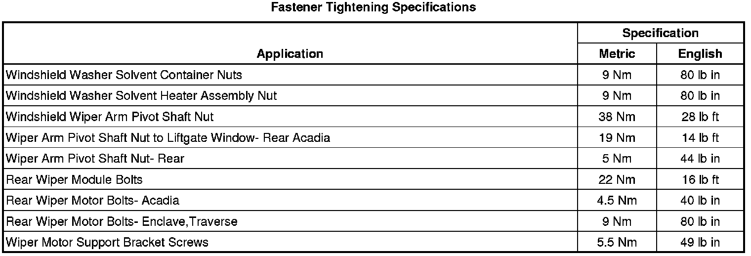 Wiper and Washer Systems: Specifications