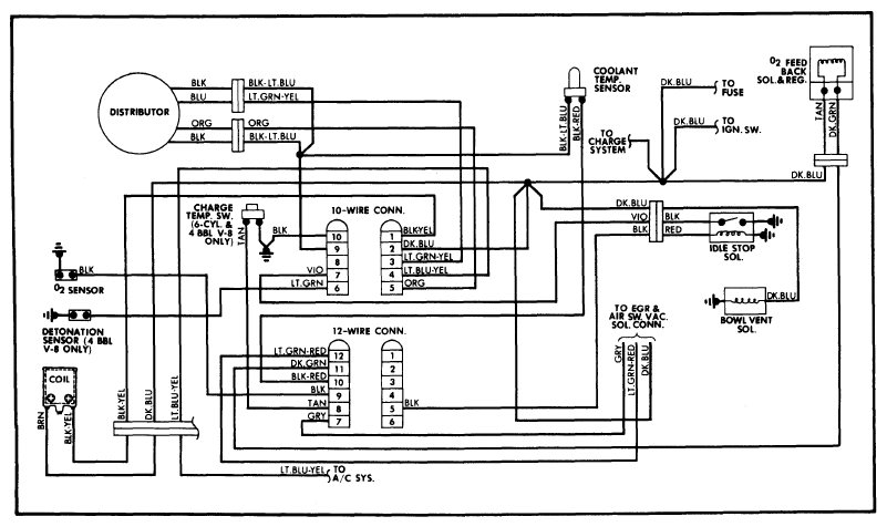 For a diagram of 10-wire and 12-wire connectors for the ignition and electronic fuel injection systems of 318" V8 EFI, see Chrysler Electronic Fuel Injection Articles in Fuel Systems Section.