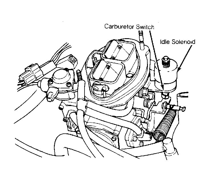 This switch is located on the end of the idle stop to signal the computer when the engine is at idle. When the carburetor switch contacts the throttle lever ground, there will be a cancellation of spark advance and idle control of the air/fuel mixture. See Fig 1 .