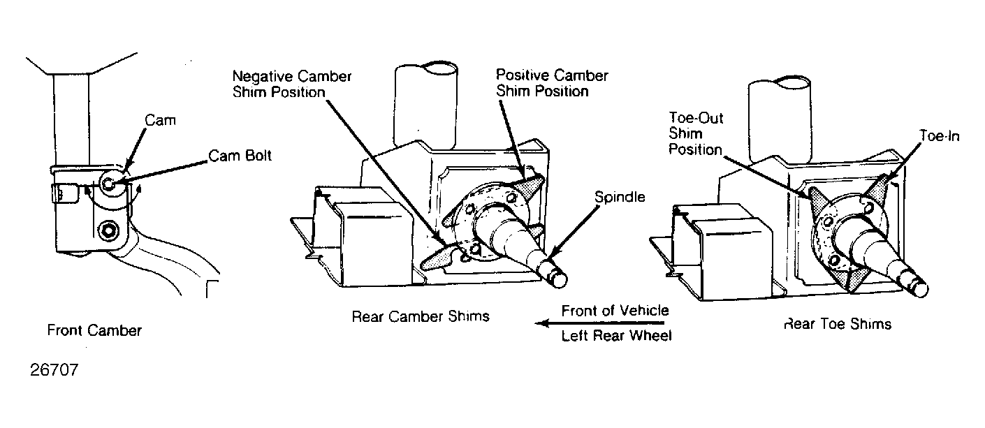 To adjust toe-in, adjust shims between spindle mounting surface and spindle mounting plate. See Figure . Tighten to specifications.