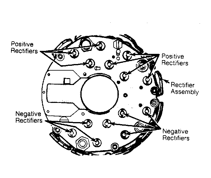 - There should be continuity in only one direction. If there is continuity in both directions, rectifier is short-circuited. If there is no continuity in either direction, rectifier is open. If rectifier is shorted or open, replace rectifier assembly.