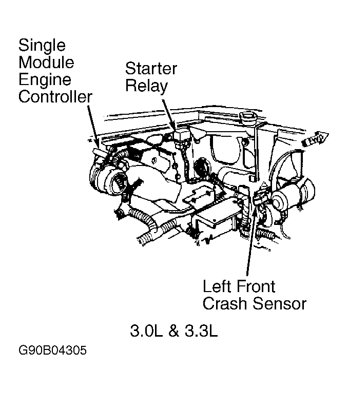 | Viewed From Right Side of Vehicle | At left front corner of engine bay. See Figure . | |