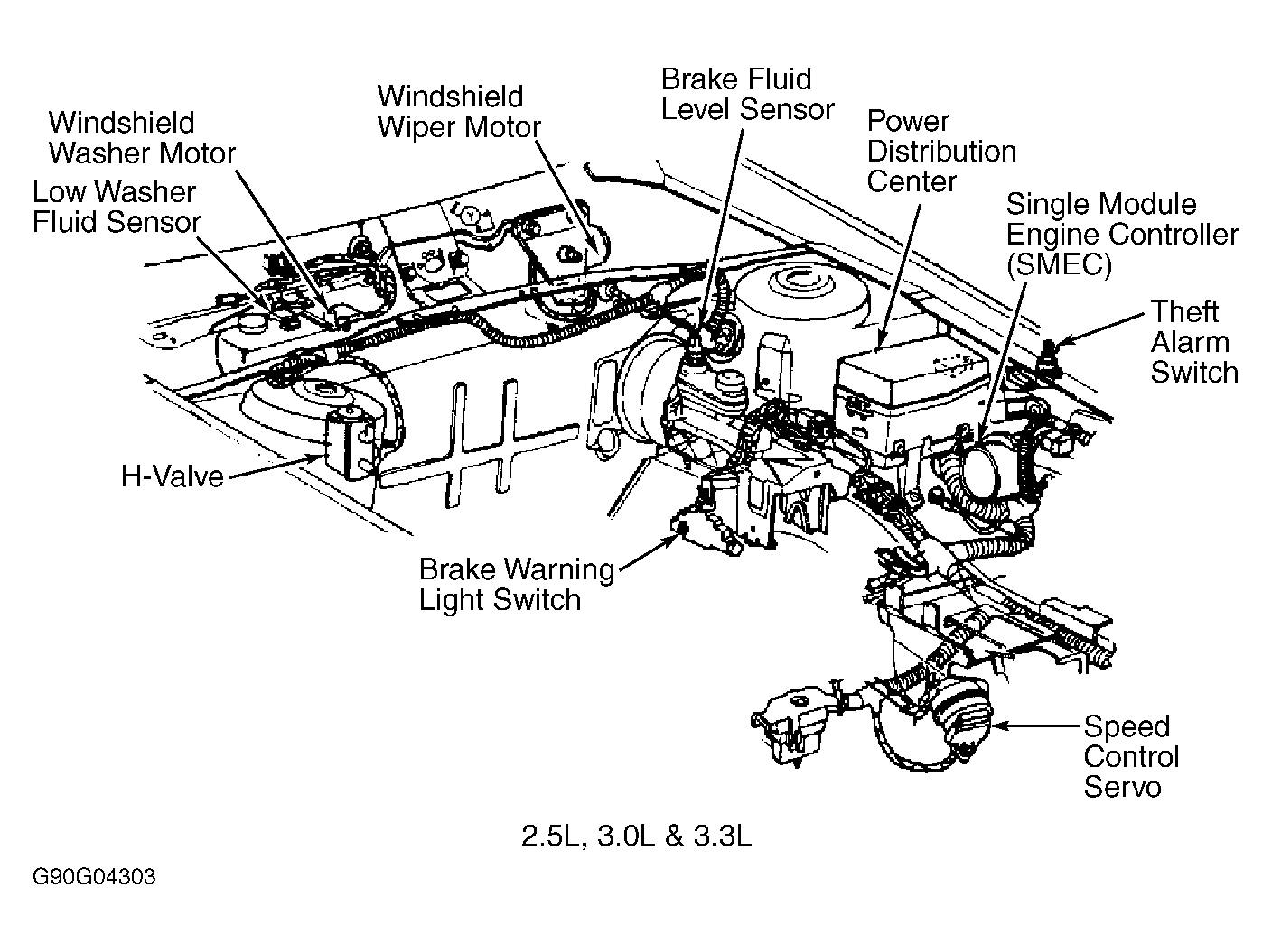| Single Board Engine Controller (SBEC) | At left front corner of engine bay. | |