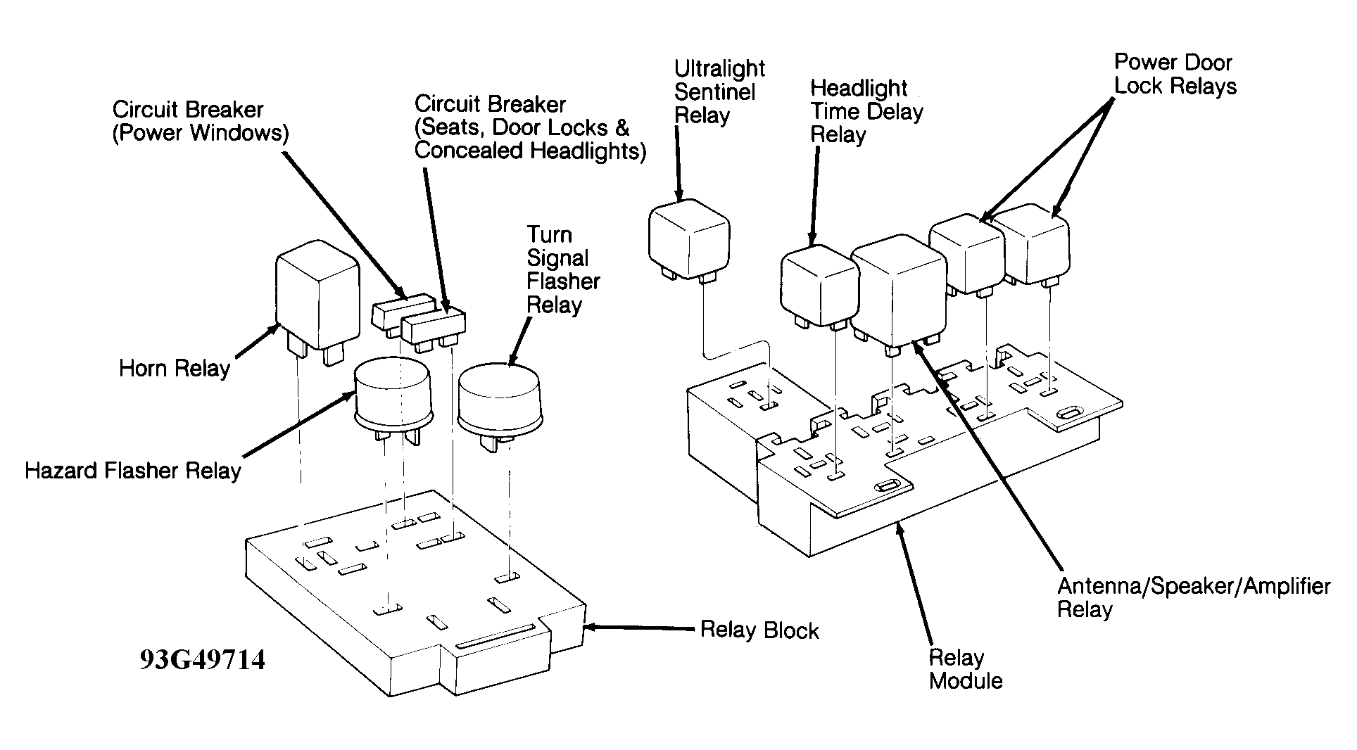 | Relay Block | Behind right side of dash, above fuse block. See Figure . |