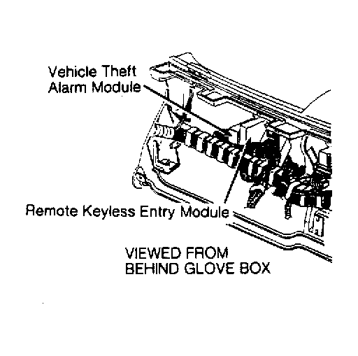 - Using DRB-II, stop door lock actuation test. Turn ignition off. Disconnect remote keyless entry module connector. See Figure . Check connector condition, and clean or repair connector as necessary. Remove door lock and unlock relays. Relays are located behind right side of glove box. See Figure . Check condition of connectors, and clean or repair connectors as necessary.