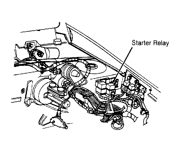 Locate and remove starter relay from connector. See Figure or Figure . On Concorde, Intrepid, LeBaron Conv., LHS, New Yorker and Vision, starter relay is located within power distribution center. On Acclaim, LeBaron Sedan, Shadow, Spirit and Sundance, starter relay is located on front of left strut tower. On all models, connect 12-volt power source to starter relay terminal No. 86 and ground terminal No. 85. See Fig 1 . Using ohmmeter, check continuity across starter relay terminals No. 30 and 87. If continuity is not present, replace starter relay.