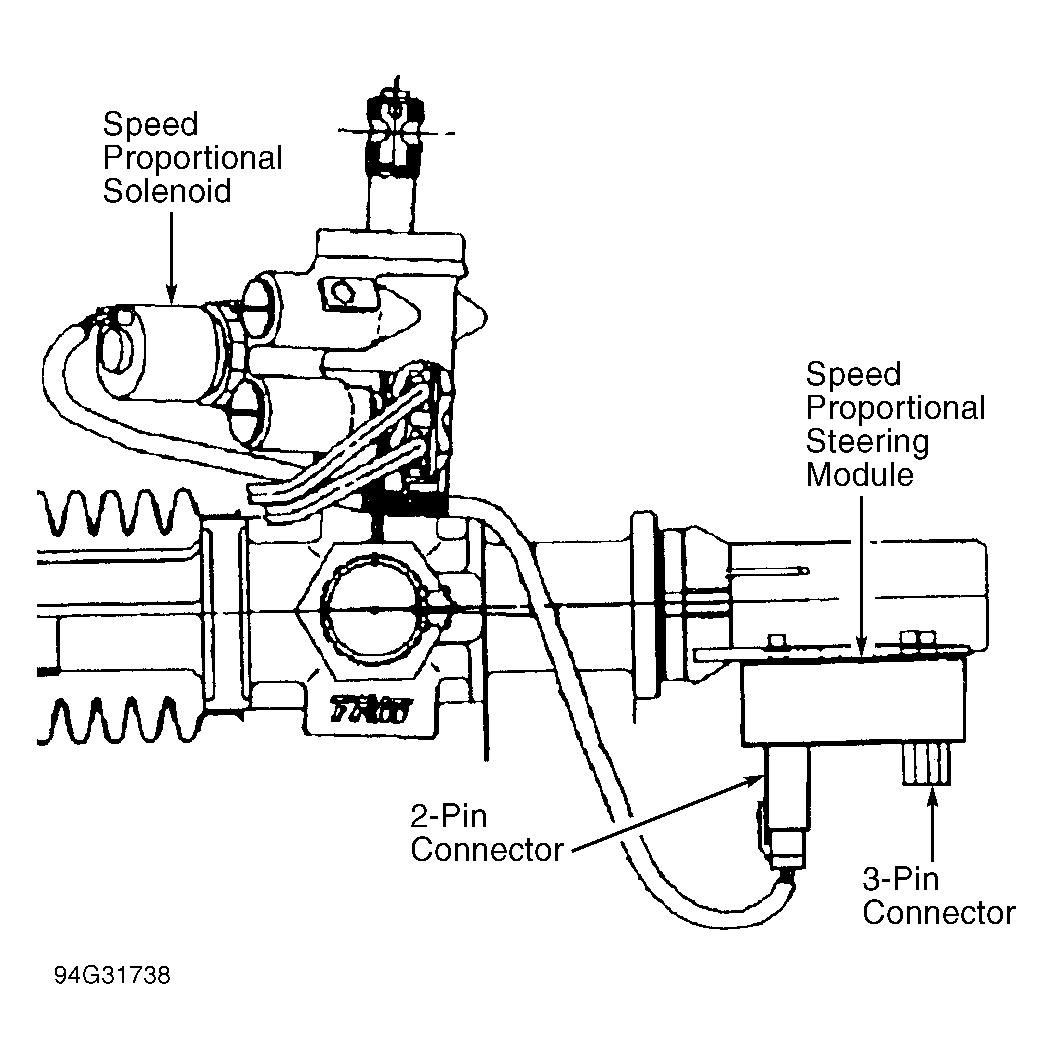 . Disconnect 2-pin and 3-pin connectors at Speed Proportional Steering Module (SPSM). See Fig 2