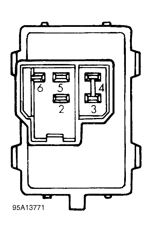 Remove power window switch. Using an ohmmeter, check continuity between appropriate switch terminals. See appropriate WINDOW SWITCH CONTINUITY table. See Fig 1 and Fig 2 . If continuity is not as specified, replace power window switch.