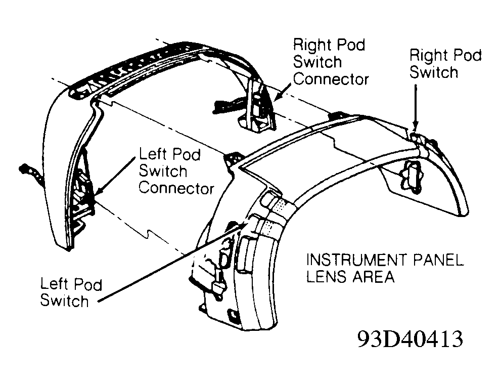 - Reconnect front windshield washer relay. Disconnect right side pod switch connector. See Figure. Check connector and clean or repair connector as necessary. Check voltage on right side pod switch connector terminal No. 4 (Light Blue/Red wire). If voltage is less than 10 volts, repair open Light Blue/Red wire. If voltage is more than 10 volts, go to next step.