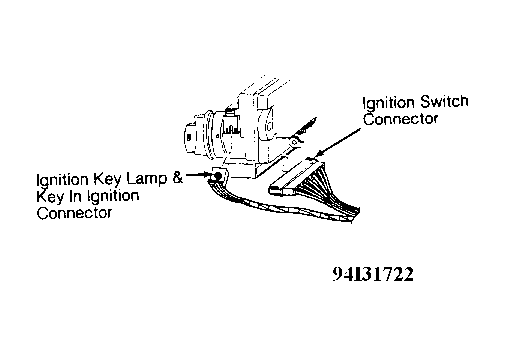 - Disconnect key in ignition switch connector. See Figure. Connect a jumper wire between key in ignition switch connector terminals No. 1 (Black/Orange wire) and No. 2 (Light Blue wire). If scan tool displays KEY IN IGN CLOSED, replace ignition switch. If scan tool does not display KEY IN IGN CLOSED, go to next step.