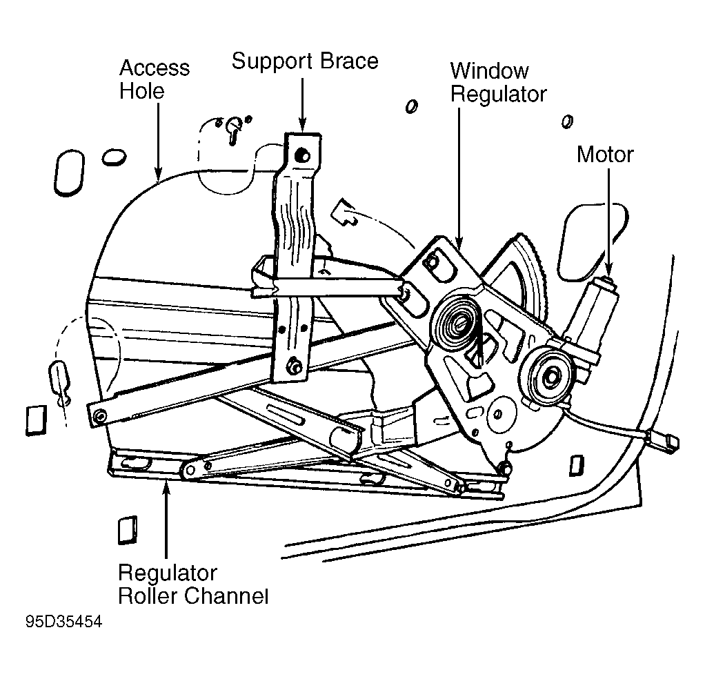 Electric motor operation is changed by reversing electric current flow. The motor operates worm gear in gearbox mounted to electric motor. See Fig 1 . Worm gear rotates pinion gear, which meshes with window regulator.