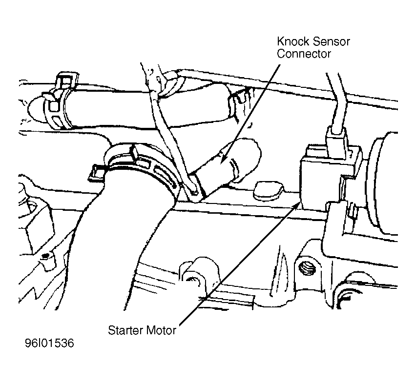 - Using an external ohmmeter, check resistance of knock sensor signal circuit between knock sensor connector and PCM connector terminal No. 24. If resistance is less than 5 ohms, replace knock sensor. Perform TEST VER-2A. If resistance is 5 ohms or more, repair open knock sensor signal circuit. Perform TEST VER-2A.