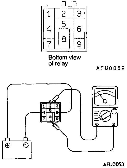 - Check the continuity between relay terminals No.2 and No.8 while connecting and disconnecting the jumper lead at the battery (-) terminal.