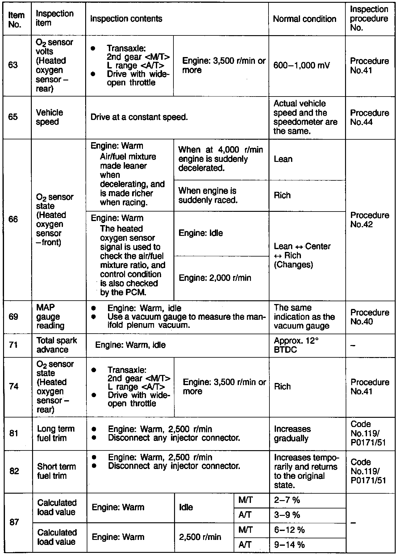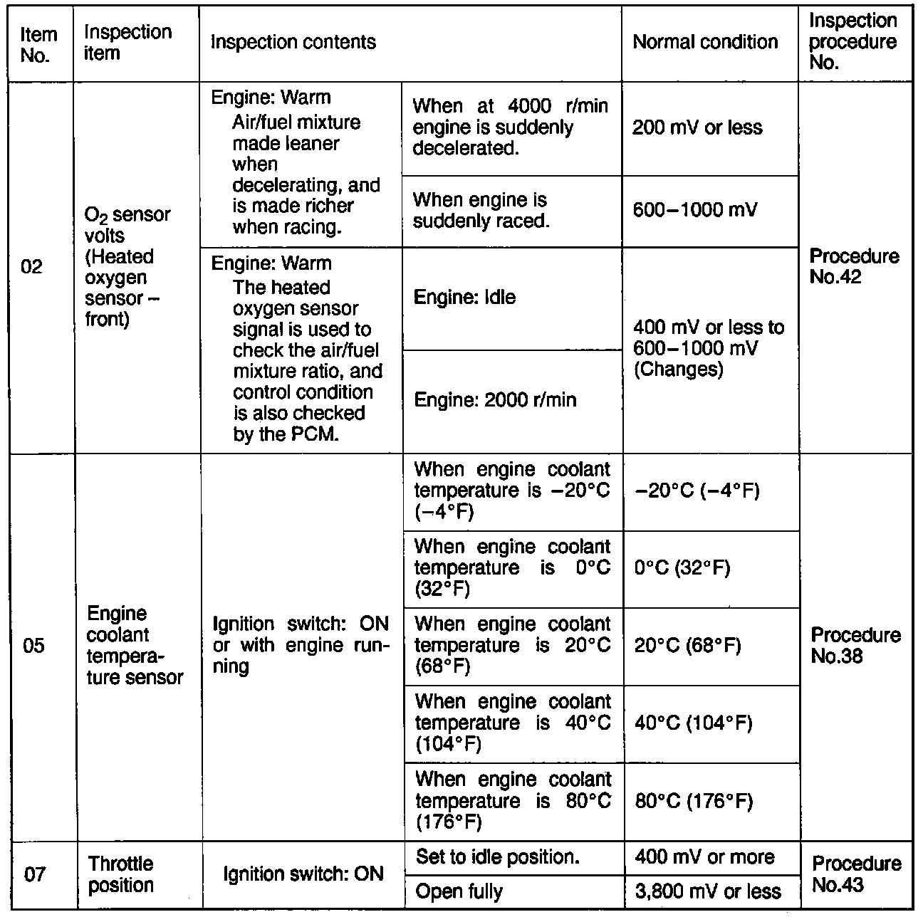 Sensor Read Reference Table (Part 2 Of 3):