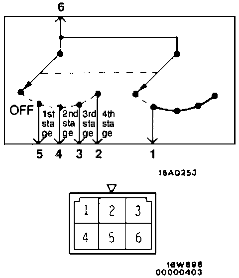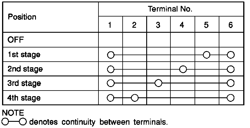 The continuity between terminals at each position is as indicated in the table.