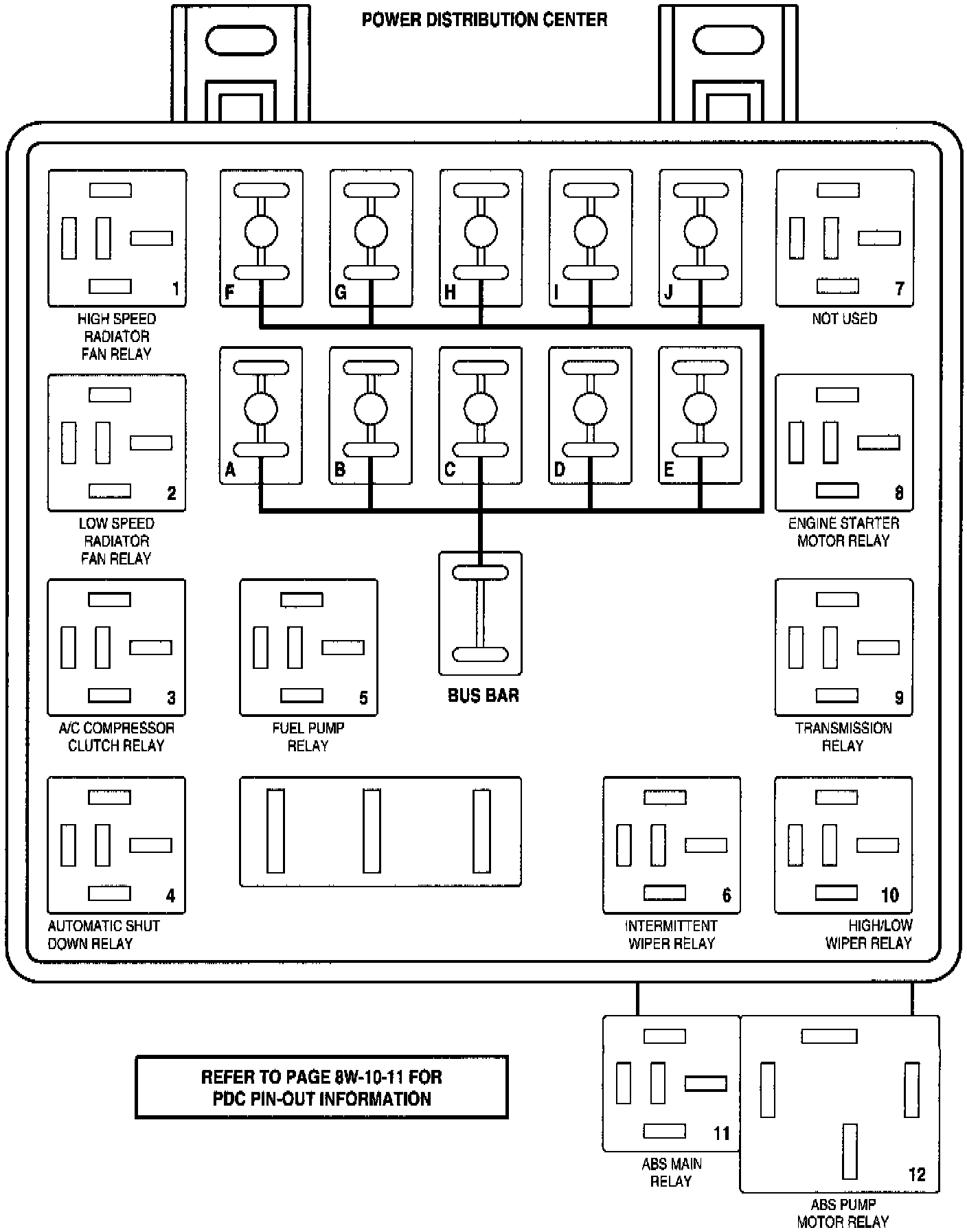 The Auto Shutdown (ASD) relay is located inside the power distribution center. The power distribution center is located next to the battery.