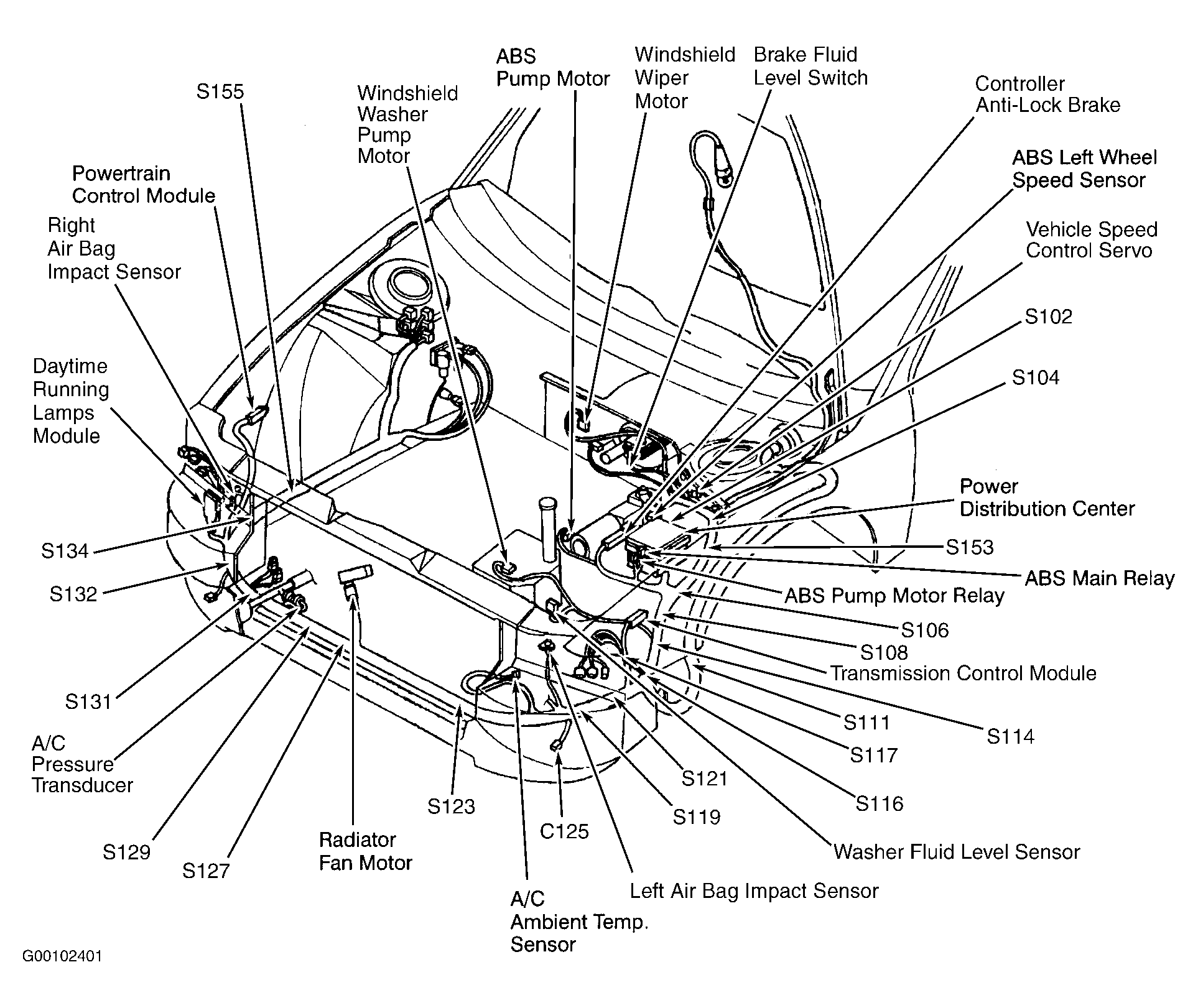 | Power Distribution Center | In engine compartment, forward of left strut tower. See Figure . |