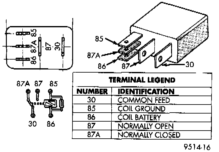 When the PCM de-energizes the ASD and fuel pump relays, terminal number 87A connects to terminal 30. This is the Off position. In the off position, voltage is not supplied to the rest of the circuit. Terminal 87A is the center terminal on the relay.
