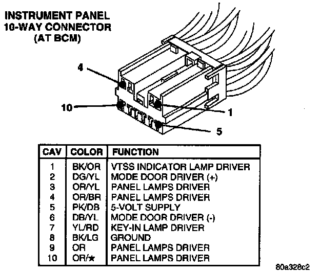 Instrument Panel 10-Way Connector (At BCM):