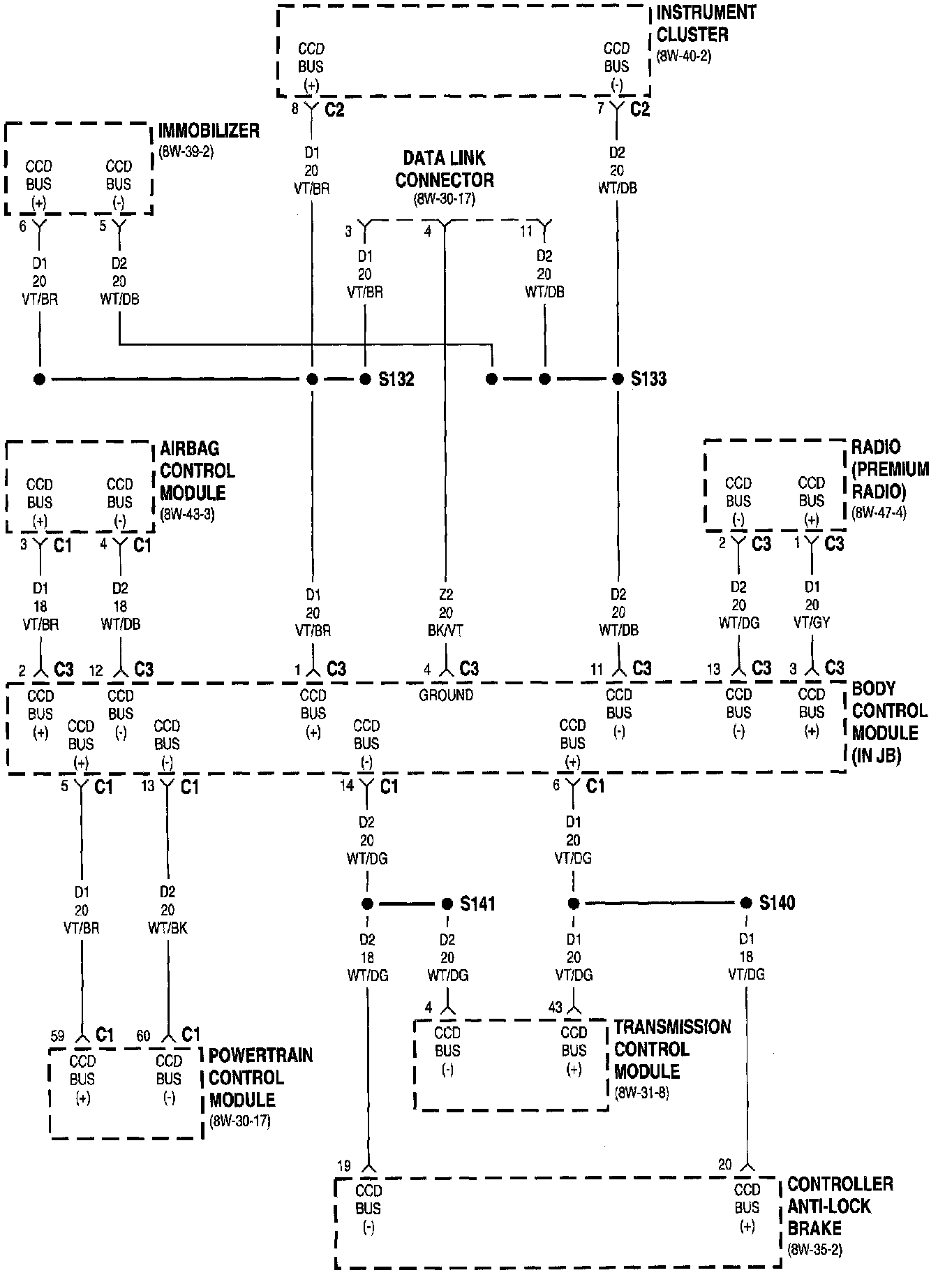 Home >> Chrysler >> 1998 >> Sebring Convertible L4-2.4L VIN X >> Repair and Diagnosis >> Powertrain Management >> Computers and Control Systems >> Relays and Modules - Computers and Control Systems >> Body Control Module >> Diagrams >> Electrical Diagrams >> Wiring Diagrams