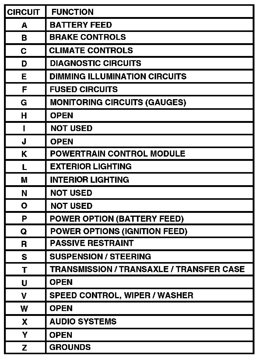 Circuit Identification Code Chart: