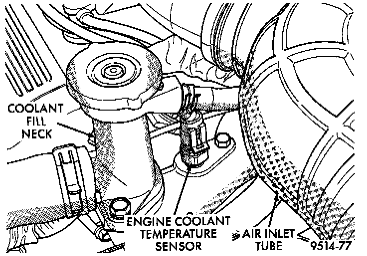 The coolant sensor threads into the rear of the cylinder head Figs. 14. New sensors have sealant applied to the threads.