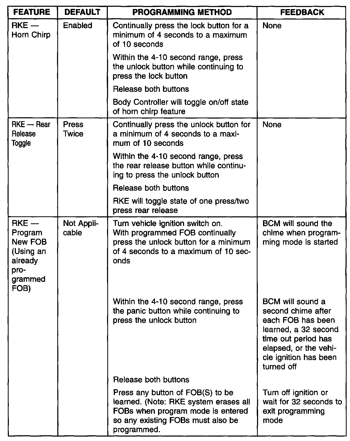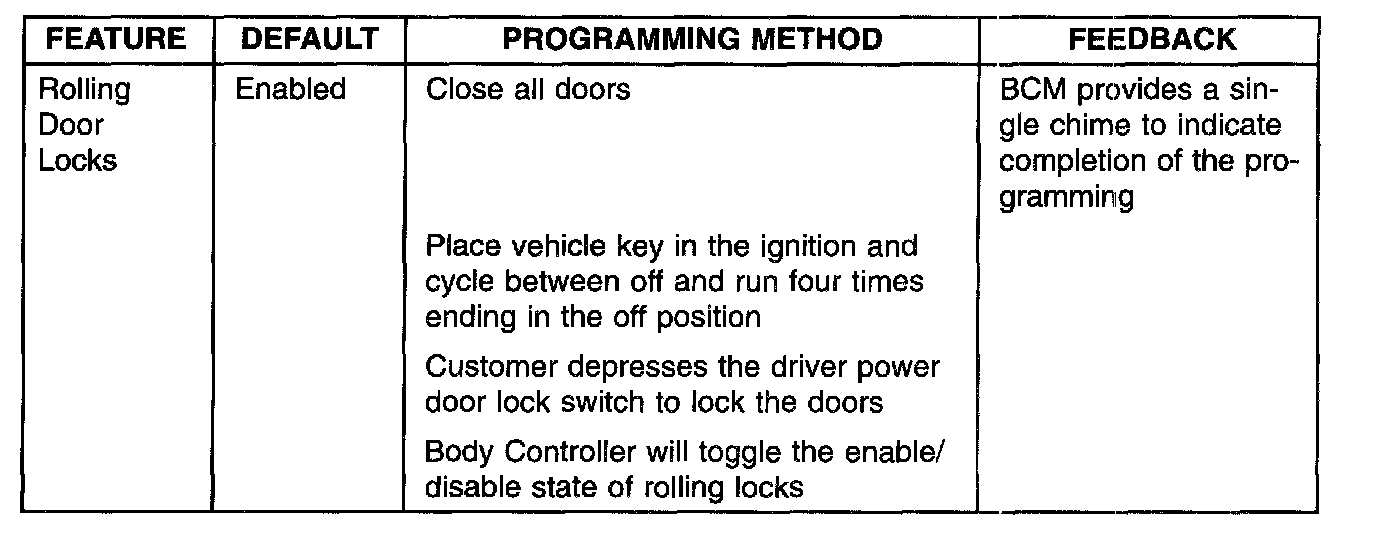 The 1998 and 1999 LH has several customer programmable features which can be disabled or enabled by the customer.