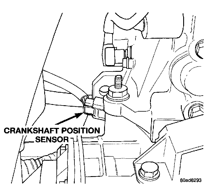 The crankshaft sensor is located on the passengers side of the transmission housing,. above the differential housing. The bottom of the sensor is positioned next to the drive plate.
