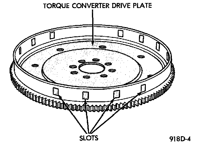 The crankshaft position sensor detects slots cut into the transmission driveplate extension. There are 3 sets of slots. Each set contains 4 or 5 slots, for a total of 13 slots. Basic timing is set by the position of the last slot in each group. Once the Powertrain Control Module (PCM) senses the last slot, it determines crankshaft position (which piston will next be at TDC) from the camshaft position sensor input. The 4 pulses generated by the crankshaft position sensor represent the 690, 490, 290, and 90 BTDC marks. It may take the PCM one engine revolution to determine crankshaft position.
