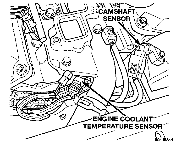 The camshaft position sensor provides cylinder identification to the Powertrain Control Module (PCM). The sensor generates pulses as groups of notches on the camshaft sprocket pass underneath it. The PCM keeps track of crankshaft rotation and identifies each cylinder by the pulses generated by the notches on the camshaft sprocket.