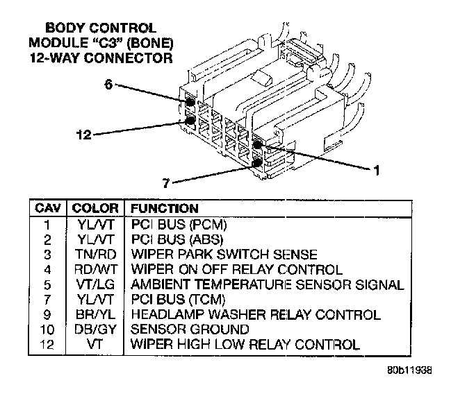 Body Control Module "C3" (Bone) 12-way Connector: