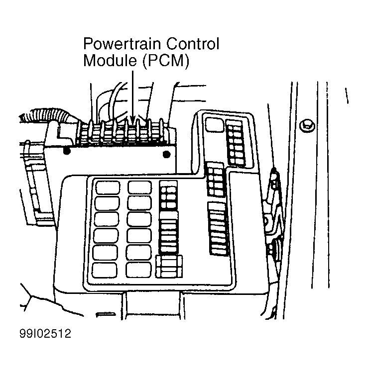 Powertrain Control Module (PCM) is located at driver's side front corner of engine compartment. See Fig 1 or Fig 2