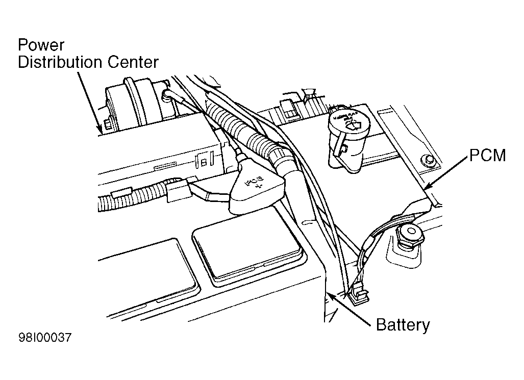 - Disconnect negative battery cable. Remove filler neck from windshield washer fluid bottle. Squeeze retaining tabs on power distribution center while pulling power distribution center upward from retaining bracket. Lay power distribution center aside for access to PCM.
