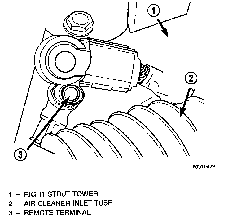 1. Open hood and disconnect the negative battery cable remote terminal from the remote battery post.