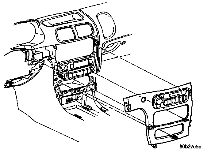 3. Remove the instrument panel center trim bezel and remove the two electrical connectors from the back of the control head and traction control switch (if equipped).