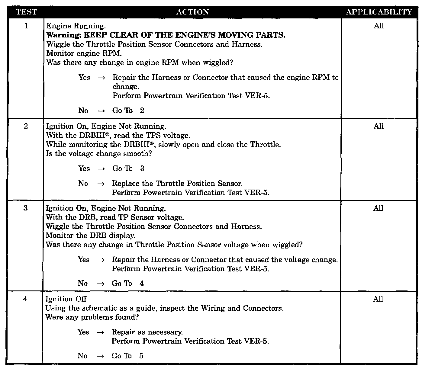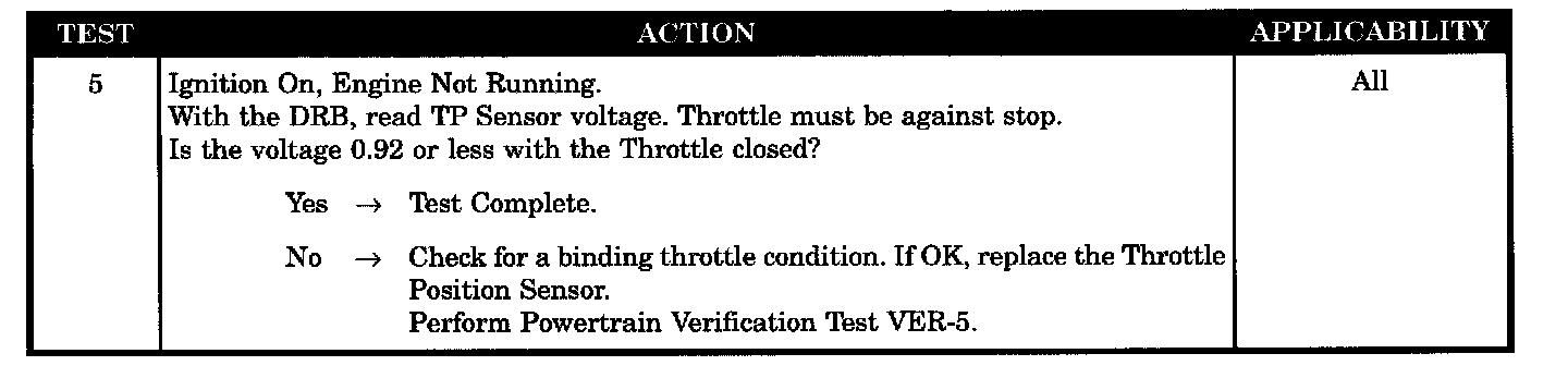 Home >> Chrysler >> 2000 >> Intrepid (CANADA) V6-2.7L >> Repair and Diagnosis >> Powertrain Management >> Computers and Control Systems >> Testing and Inspection >> Component Tests and General Diagnostics >> Checking the Throttle Position Sensor
