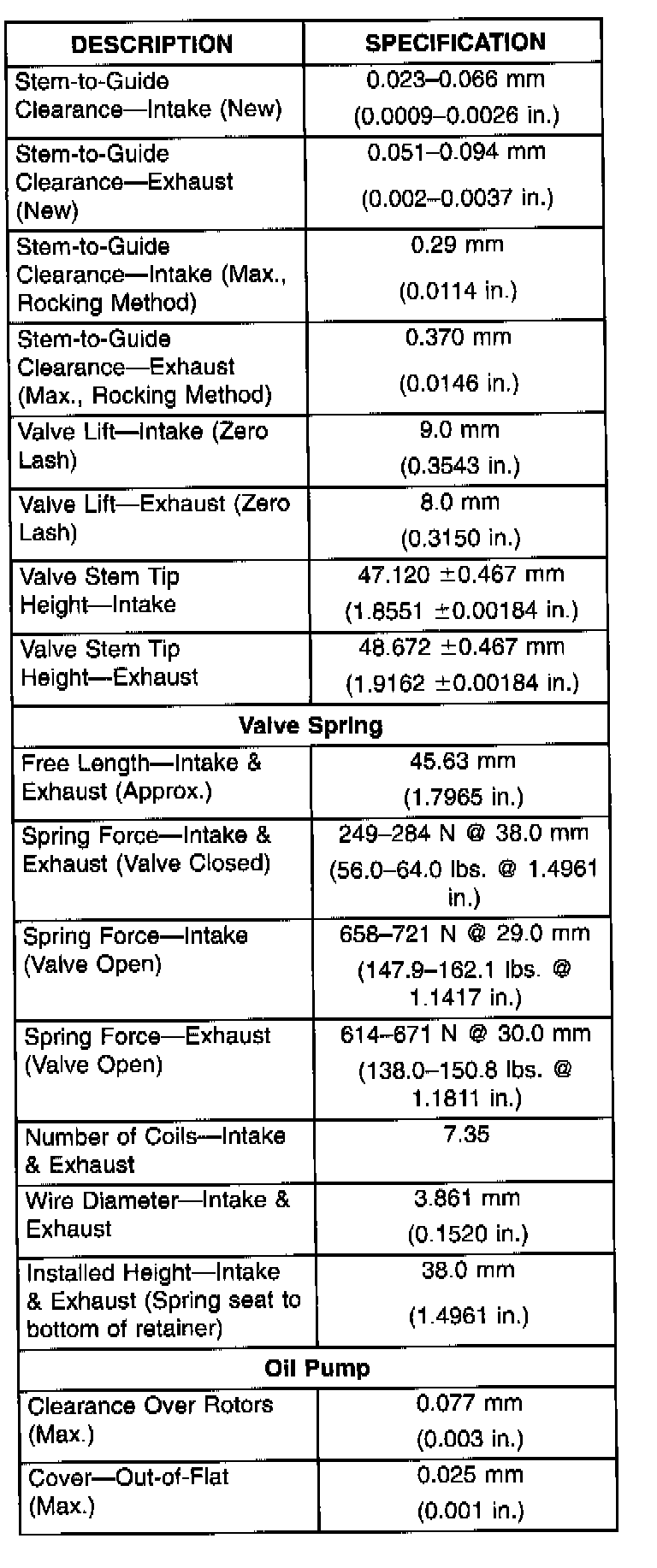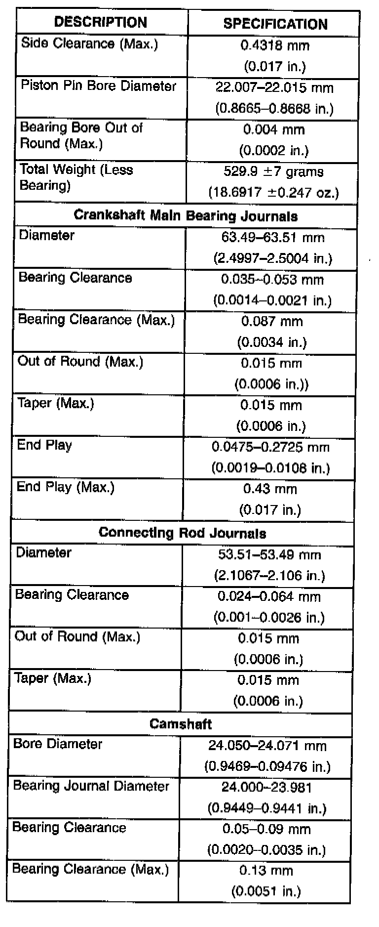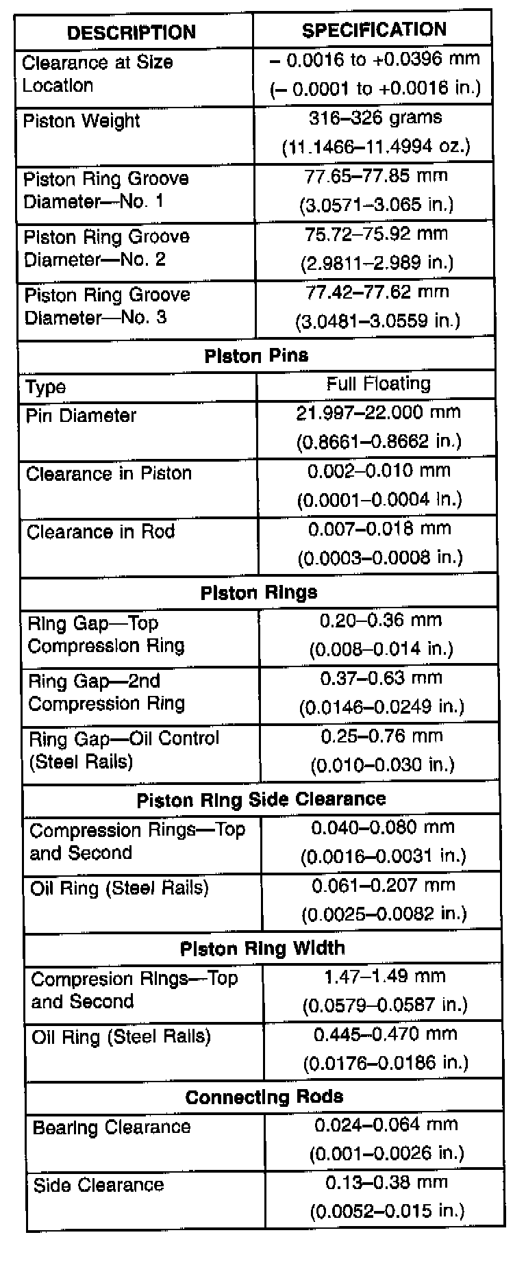 Engine Specifications