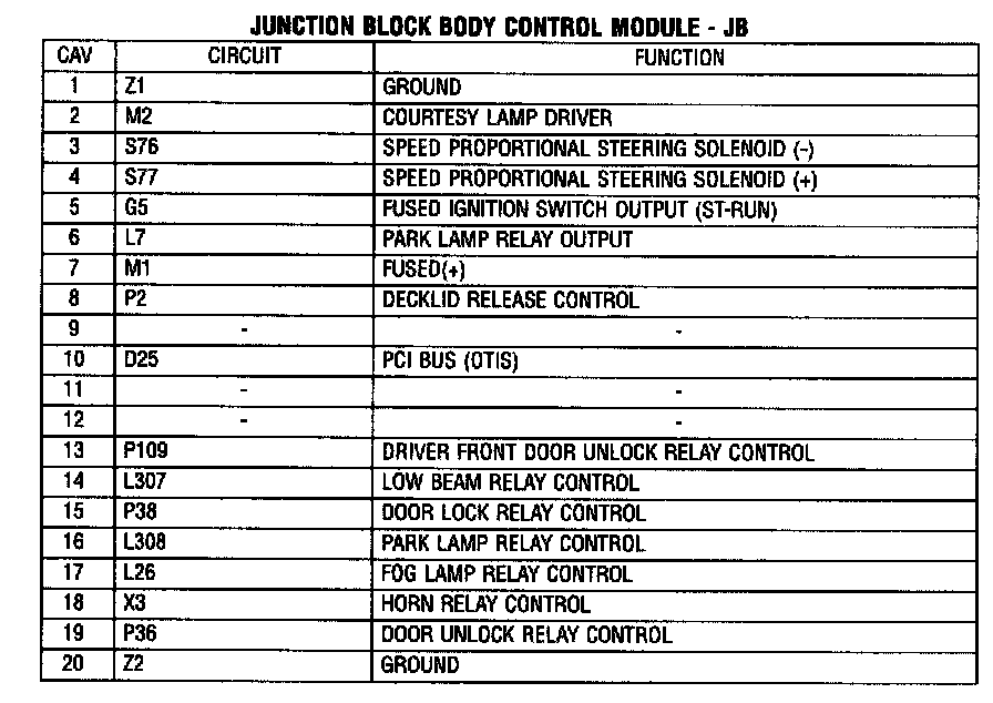 Junction Block Body Control Module - JB: