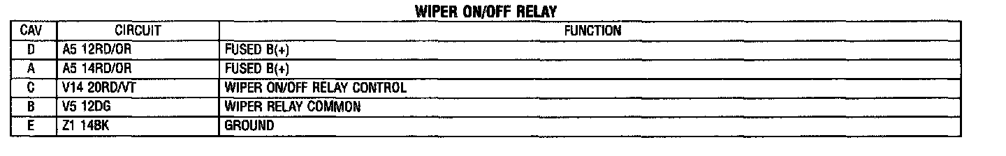 Wiper On/Off Relay: